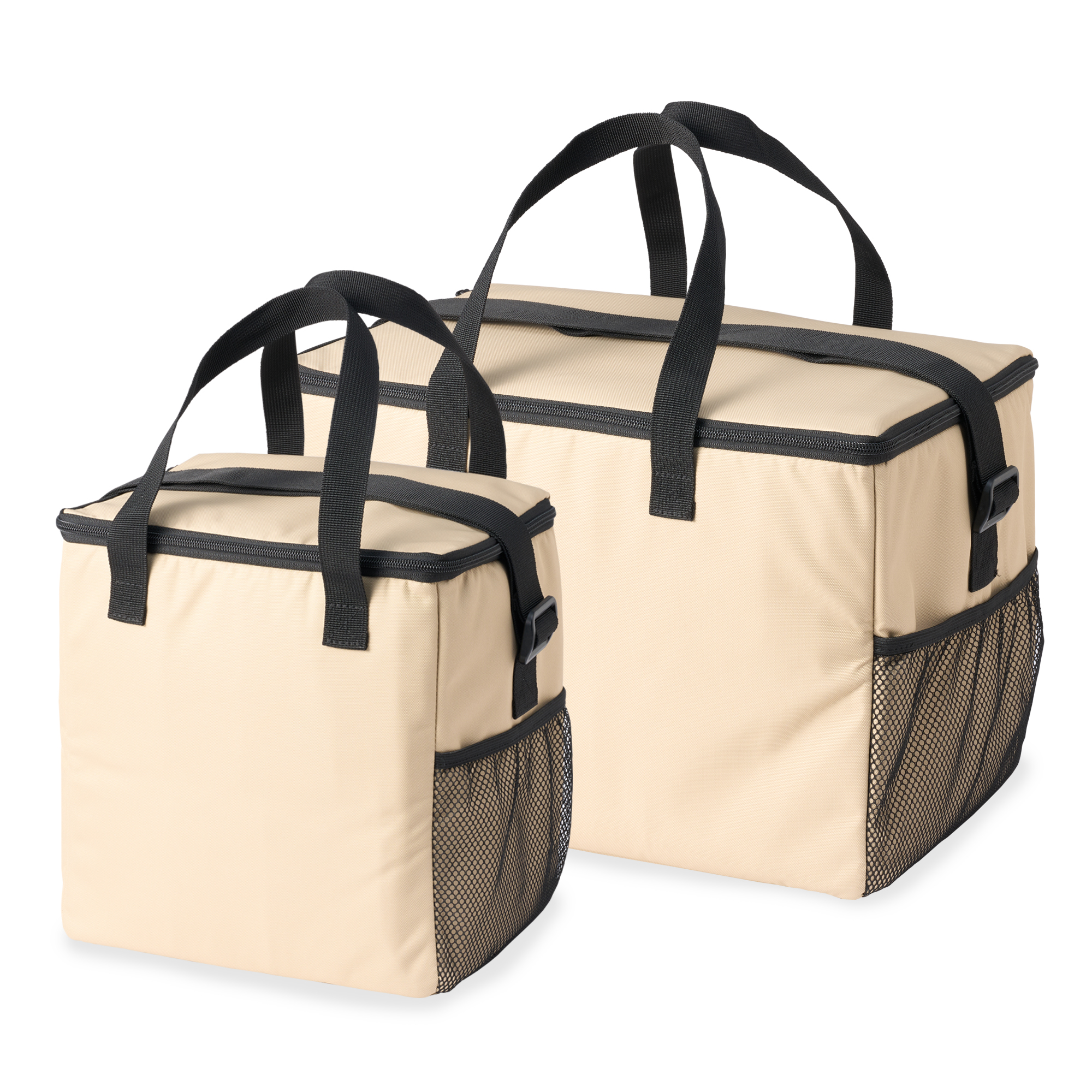 可手提也可肩背的保冷購物袋,表面施以防潑水加工。內側使用鋁箔材質,可放置保冷劑。附防水材質底板,可加強底部支撐,潮濕或髒汙時可取出清理。
