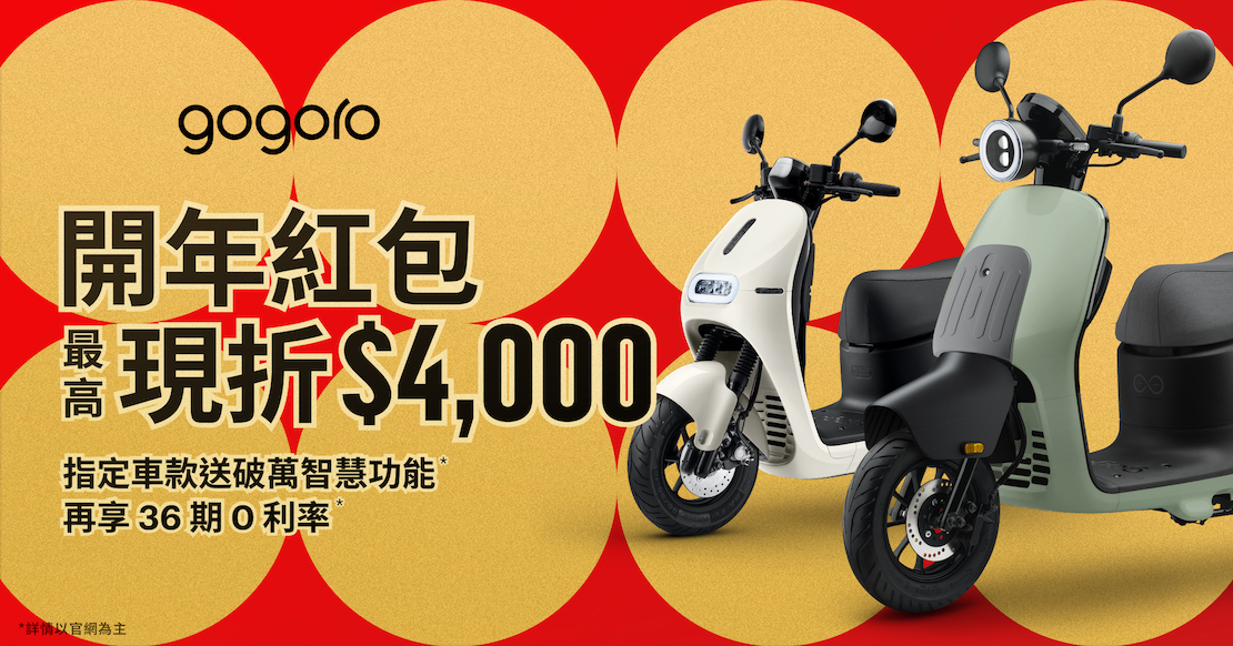 * 36 期 0 利率/真 0 利率:係指於 2026 年 4 月 30 日前參加「真 0 利率」專案,參加人於前述活動期間內購入 Gogoro Smartscooter 電動機車全車系任一車款可參加之專案貸款方案,參加人需以購車金額全額進行貸款,貸款方案可享 24 / 36 期分期付款 0 利息。係由指定第三方融資公司*提供,該指定第三方融資公司保有核准與否之決定權;Gogoro 就該指定第三方融資公司核准與否不負任何擔保、賠償或補償責任。本專案僅適用購車金額全額貸款,若車價有折扣,則依折扣後購車金額全額貸款。一次給付車款與分期付款將因分期計息而有價差,詳細貸款條件、利息及限制請洽指定第三方融資公司。(*指定第三方融資公司:和潤企業、遠信資融、仲信資融、長鴻資融。)