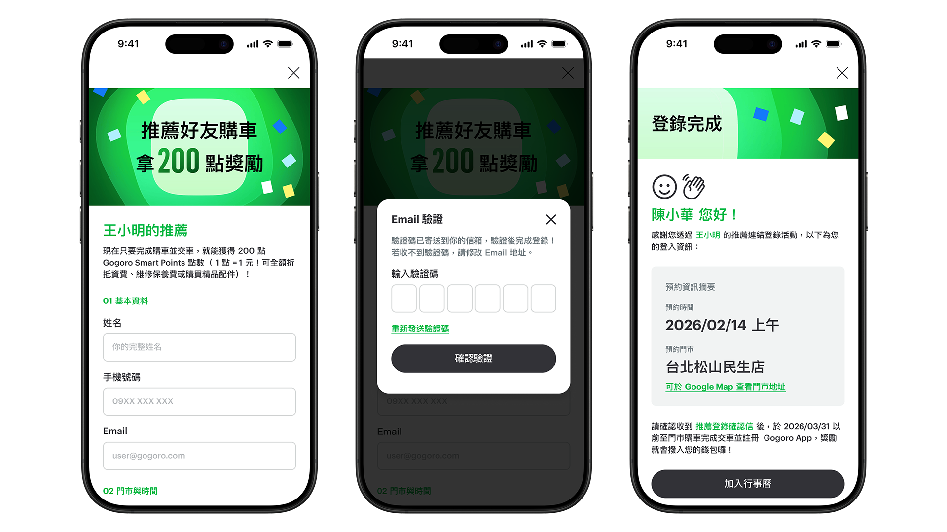 2. 親友透過連結填寫資料登錄活動,並確認收到登錄成功的 Email