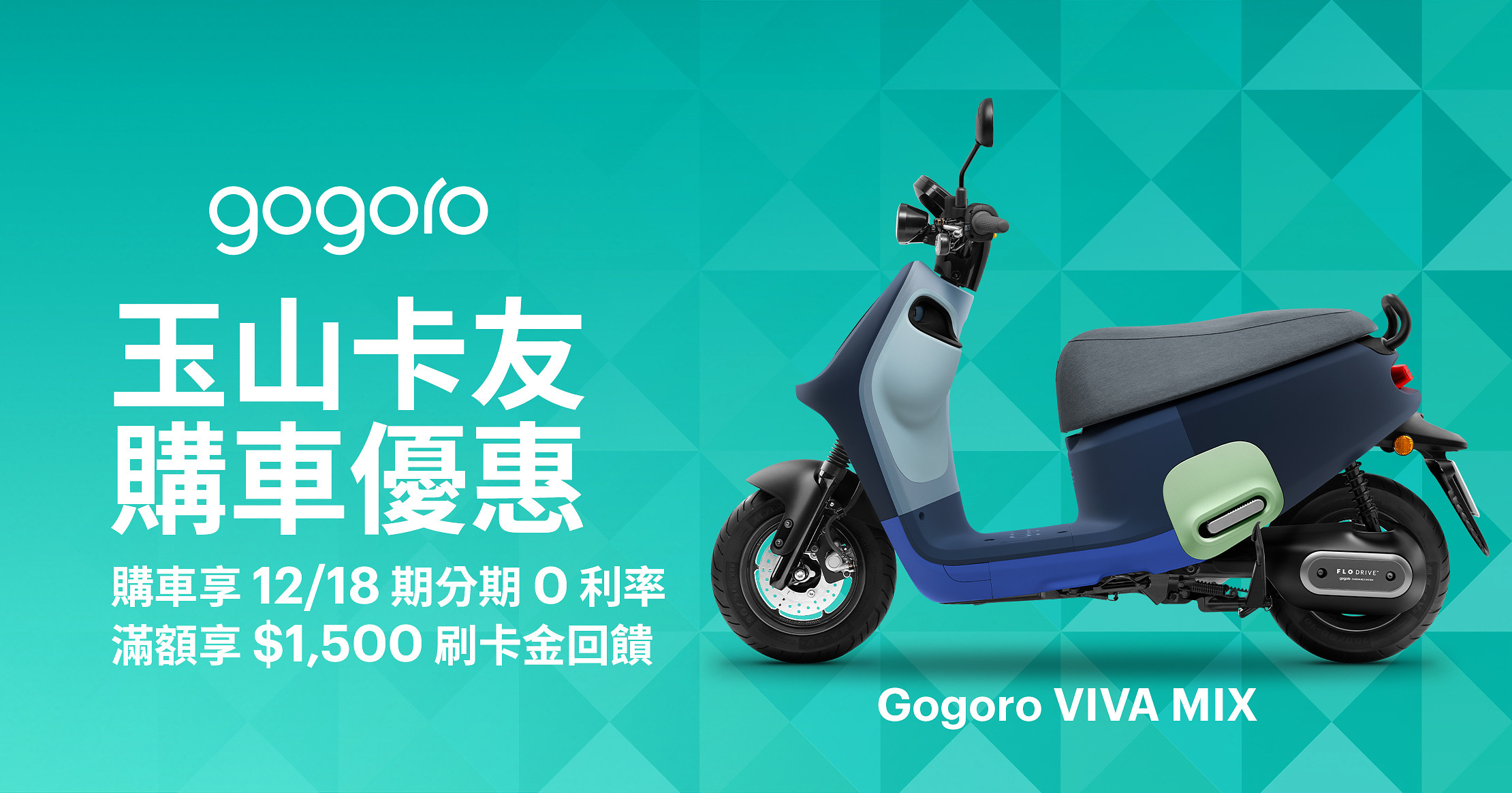 - 本活動係由 Gogoro 所主辦及信用卡分期購車優惠係由玉山銀行所提供,玉山銀行與 Gogoro 保留活動修改、變更及終止之權利;Gogoro 不負任何擔保、賠償或補償責任,且本活動亦不得與 Gogoro 之其他折扣、優惠或活動併同使用。本活動是否得與玉山銀行其他優惠活動併用,由玉山銀行解釋。