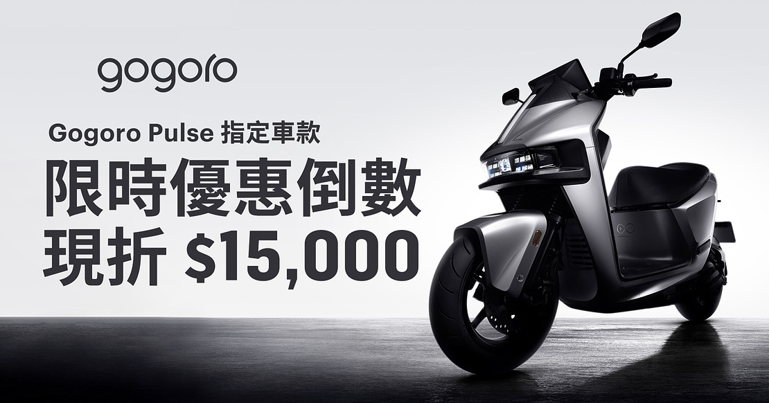 2025/10/26 前入手 Gogogro Delight, VIVA MIX & VIVA MIX XL 車款享最高一年免費騎*,月月直接折抵指定資費方案基本費用 $319 元共12 個月*;入手 Gogoro EZZY 500 & EZZY 車款贈腳踏墊 & $2,000 家樂福禮券;入手 Gogoro Pulse 及 Gogoro Pulse Pro 車款指定車色車價現折 $15,000 元!挑戰地表最速,最後倒數!Gogoro Pulse & Pro 指定車款享車價限時現折 $15,000
