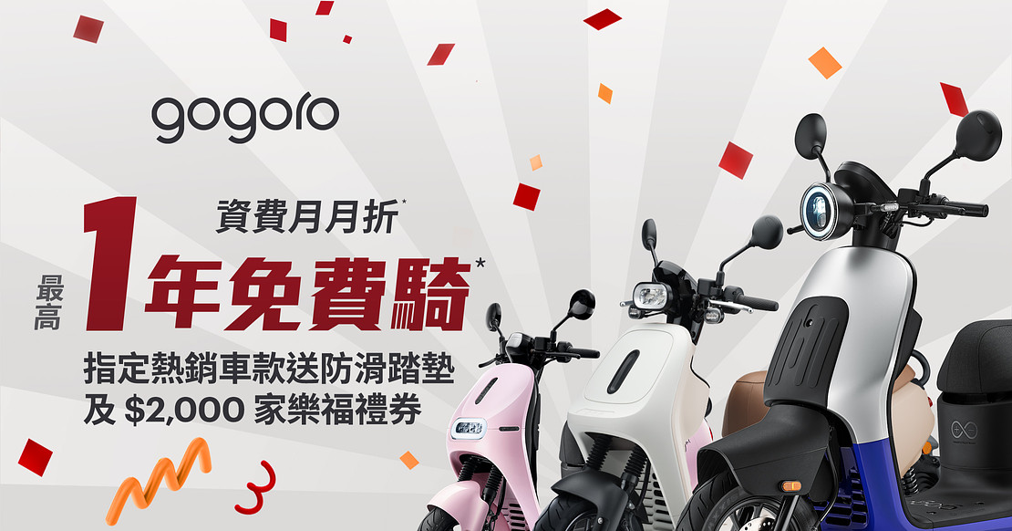 2025/12/31 前,Gogoro 提供花蓮縣市受災車主免費預約 Gogoro 花蓮中華門市道路救援及車輛檢修,若需更換指定零件提供 9 折優惠(不含工資)。另外,無論是 Gogoro 或其他廠牌機車,凡花蓮水災受損或遺失車輛,2025/12/31 前汰購補貼最高 $5,000 元。限時入手享月月折抵資費*,最高一年免費騎*!熱銷 EZZY 500 & EZZY 系列享防滑踏墊 & $2,000 家樂福禮券